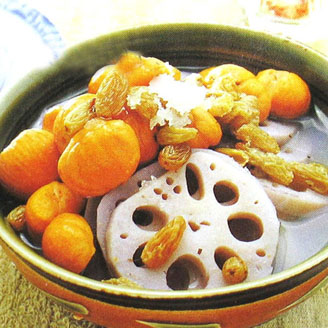 方解:银耳味甘性平,能养阴润肺,生津润肠,滋阴止血;雪梨性寒味甘,有润肺止咳、降火清心等作用;猪瘦肉滋阴滋燥;蜜枣亦有滋阴之用。