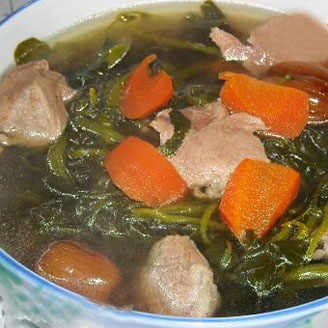 材料:西洋菜500克、排骨250克、南北杏20克、罗汉果1\2个、姜3片