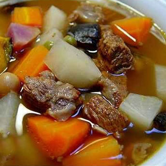 方法:猪龙骨洗净用开水煮一下(去血水),竹蔗洗净剖开切断(约小指大小),茅根、马蹄、玉米、红萝卜洗净,茅根、玉米、红萝卜切断,竹蔗、茅根、玉米、红萝卜、龙骨一起煲开后放入马蹄,小火煲3小时。