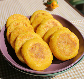 3. 不沾锅倒少许油烧至五成热将饼放入,中小火煎至金黄,翻面煎至金黄即可。