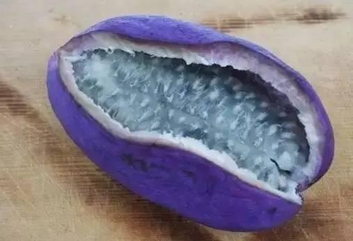 阿科比,产于日本。长相挺慎人的,紫紫的颜色也让人没啥食欲,味道不太甜,据说要煮一下才会比较好吃。并且打开里面白白的,跟西米一样,又软软的,据说是日本有钱人才吃的水果,并且在日本也是很罕见的,不是人人都见过。