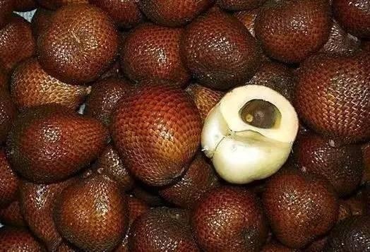 蛇皮果,又名沙叻,是棕榈科蛇皮果属植物,呈球、陀螺形或卵球形,外表似蛇皮,是东南亚著名水果。还有一种是泰国的蛇皮果,是比较长身一点,果肉外表有点像榴莲,核比较大一点,但味道也很不错,偶然可以在生果店看到,但价钱并不便宜。