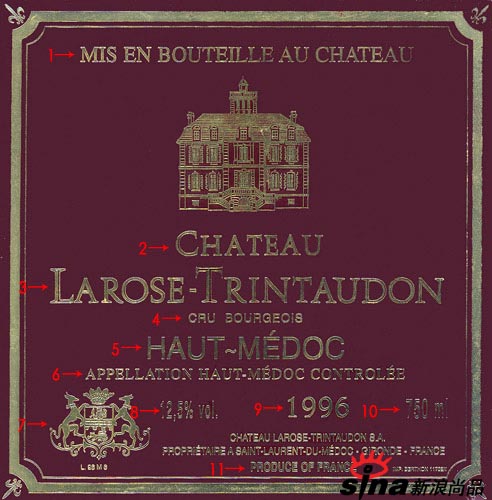 6.酒庄装瓶:ESTATE BOTTLED,在欧洲,法令规定特许酒必需在酒庄装瓶。新世界酒厂也会在酒标上有此注明,以表示在酒庄装瓶或酿酒葡萄来自本属葡萄园,以提高消费者信心。