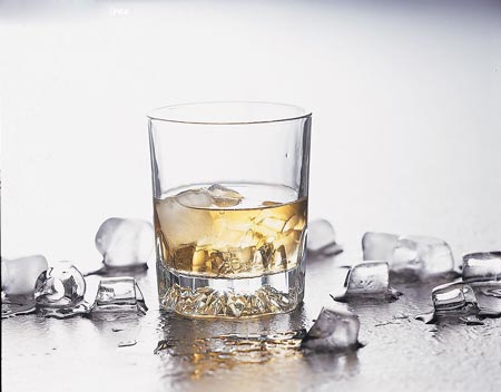 威士忌 常温纯饮或加冰块及矿泉水 通常于直立杯内先加1/3冰块,再斟酒以不超过冰块之量。但高年份的威士忌宜纯饮,方能享受其细致与香醇。 酒杯直立矮杯。