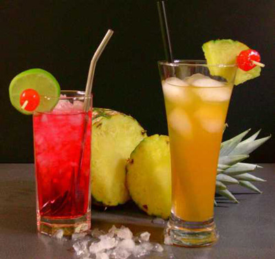 基酒:白朗姆酒、椰子甜酒,辅料:柠檬汁、菠萝汁、淡奶。