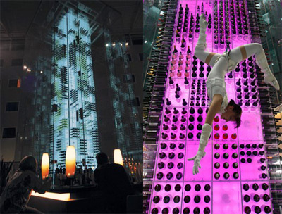 这是一座位于伦敦Stansted机场, 13米高, 充满科幻风格的的透明酒塔。它距离候机大楼只有2分钟,对于好酒的朋友真是可解燃眉之急。 当从塔上取酒的美女缓缓下降时,杯里的倒影就像天使从远处飞来,所以又别名天使之塔。