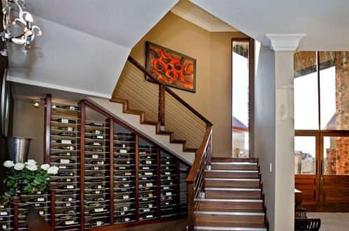 利用楼梯下的空间,美酒一瓶瓶的横置与其中,形成家中闪亮的角落,楼梯的遮挡,也避免了阳光的直射,更有利于美酒的储藏,好东西更好好好的保护。