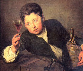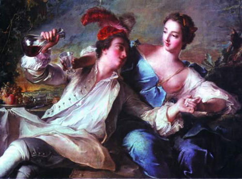 葡萄酒是18世纪的欢乐所在,因为有它人们才感觉到渴……吃着咸火腿……就像兰克累(Nicolas Lancret)所描绘的场景一样;或者是吃牡蛎……就像特鲁瓦(de Troy)的《牡蛎大餐》