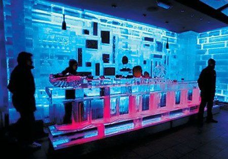 据美国有线新闻网报道,餐厅老板告诉记者,这家冰餐厅是中东第一家冰屋。酒吧内所有的物品,墙壁、桌椅、杯碟、吧台、灯具、竹帘、墙上挂着的艺术品以及摆放在室内的雕塑皆是由冰块构成。花费17美元,客人们就可以进到店里,喝上一杯饮料,并穿上一件保暖的皮大衣,戴上毛线手套并穿上鞋子。在进入大厅前,店主还细心地让客人们到一间室温在5摄氏度左右的房间,适应一下突降的温度。