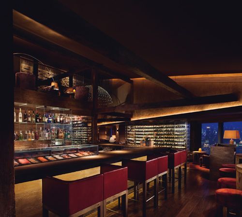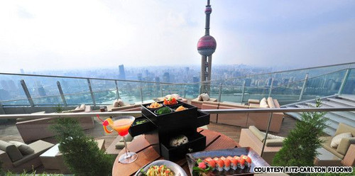 用大量天然材料营造出颇有亲和力的现代装饰风格,加上观赏东方明珠塔的绝佳位置,位于丽思卡尔顿顶层的这家提供多元美食的餐厅,也是深夜喝小酒时髦去处。