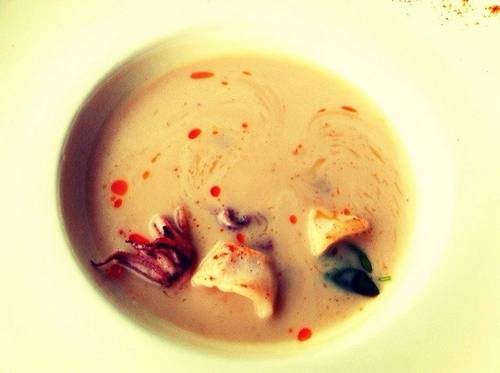 这家店有两个非常棒的菜品,鱿鱼白扁豆汤和鲷鱼刺身,可惜只出现在午市的套餐里。