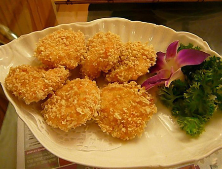 泰式味道很浓郁,门庭上勾勒着金色彩绘,沿街的墙边建起木制风车,清淡的檀香回转与鼻尖,像是身临其境“黄袍佛国”内。Thai house里久吃不腻的就是泰式鱼饼,薄薄一张外酥里嫩,带有鲜甜味道。即使不蘸酱料也不会感觉有油腻。
