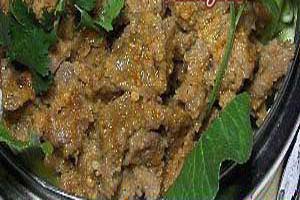 基本材料 净 牛 肉250 克炒 米 粉40 克葱 花, 姜 末 各3 克郫 县 豆 瓣 酱10 克