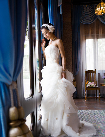 提起婚纱高级定制,首先映入脑海的便是华裔设计师Vera Wang的婚纱,穿上她设计的婚纱步入教堂是每个女人的梦想,相比其他城市,上海的新娘们相当幸运,用不着飞去美国,在本地就能买到100%Vera Wang出品的婚纱。开在香格里拉大酒店4楼The Perfect Wedding里的Vera Wang专卖,打出的就是只定做不租赁的旗号,新款的更新速度非常快,不仅2009年秋冬的“森林幻想曲”系列已经全面上市,甚至还可以定做2010年春夏的新娘服。