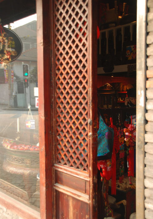 店名:金粉饰衣 地址:巨鹿路614号 特色:古代桌子、椅子、摆设品、小饰品 紧挨着“一甸之家”,旁边有一个叫“金粉饰衣”,给我有种回到古代时期的那种的那种格调,推开门一看,真的有很多中国情的东西。 这张是在门缝里偷拍的