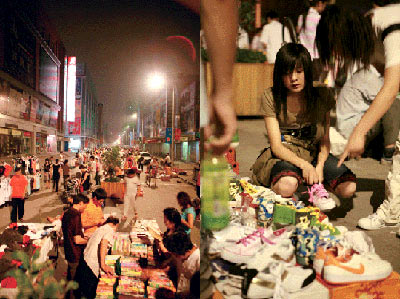 NO2:新西宫 抵达:20∶55 耗时:1小时 逛逛:新西宫在上海有着“小七铺”之美誉,但远没有七铺路那么拥挤,那么疯狂。 新西宫商场内的小店主,不少是自己创业的年轻人,商品绝对有个性,跟潮流。夜市基本上会开到晚上9——10点钟。 小零小碎的玩意数不胜数。吃的玩的用的,甚至花鸟宠物、滚轴溜冰场,城市生活中的时髦部件,你都能看到,人气超级旺。 战利品:新西宫的美甲、接发、大头帖,赫赫有名,价格便宜。 NO3:中原路 抵达:20∶00 耗时:2小时 逛逛:天色渐黑,中原路欧尚超市门口,呈现出一片繁忙的景象。超市内熙熙攘攘客流不断,超市外,上百个摊位排得满满当当。各色人群掺杂,货物之 间的摆放也相当有特色,并不像一些摊贩那样将货物随意排列,而是在摊主个性化的巧手下,合理利用每一寸空间,摆放出最为吸引人目光的花样。 战利品:近国和路地摊末端,有一卖袜子的摊贩。长袜15元每双,质地不错,摊主生意好得连招呼都没时间跟你打。