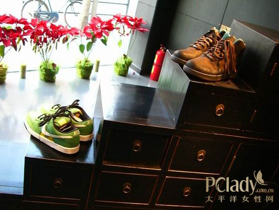 印象最深刻的就是超高的"鞋塔",拿鞋的时候要用绳子把人吊上去. 还有一辆超级拉风的挎斗摩托车作为陈列; 一件TEE大概300元左右,质地还算不错. NIKE, DC, ES的一些限量波鞋你也可以在这里找到, 有兴趣的朋友有空可以去逛逛.