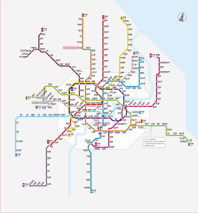 轨道交通9号线一期工程于2007年12月29日建成试运营,9号线二期工程于2009年12月31日建成试运营。9号线(松江新城-杨高中路)长约46公里,投入运营车站23座,是上海轨道交通网络中重要的市域级骨干线路。线路识别色:淡蓝色。