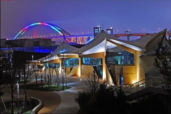 静安雕塑公园一期让人惊艳的设计无疑使人记忆犹新,现在,二期的设计理念更是新颖,由于大部分建设在电站上面,整个公园将电站等地面构筑物化于无形。看似围合空间的曲折长廊,实是切隔视线蔽隐构筑物的妙招。在今年9月1日至10月31日期间,静安雕塑公园还将举办一届世博国际雕塑展览。