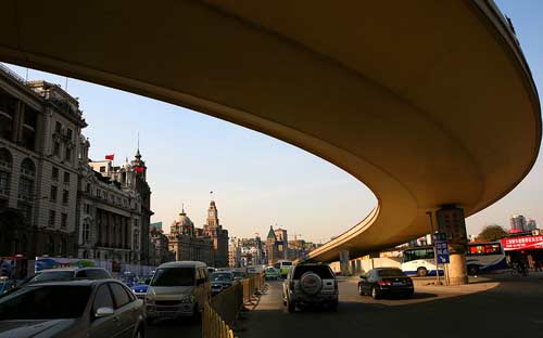 据说李敖上次来上海,别的什么事都没做,人家就带着他在黄浦江两边跑来跑去,从各个角度看弯弯曲曲的一江水。究竟哪个角落看上去最上海,坊间公认的是所谓“亚洲第一弯”,就是延安路高架外滩的下匝道,据说这段颇为壮丽的景观甚至影响了交通。更多人已经察觉到了“第一弯”的价值———江面上来来回回的游船都顶上了大大的广告牌,每行到第一弯附近水面,均小歇片刻。江对面某大楼更夸张,整个玻璃幕墙干脆就变成广告板了。