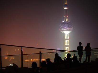 有兴奋的老外,倚在坚固的玻璃墙边,拍照留影不止,一边嚷着:“I’mthe king of theworld。”(我是世界之王。)也有要好的姐妹淘,站在露台边,聊心事,衬着泛红的夜空,姑娘们仿佛站在天尽头,映出姣好的剪影。耳边是DJ打碟的声音,不重不轻,不影响低声说话,也能叫人随性摇摆身体。。