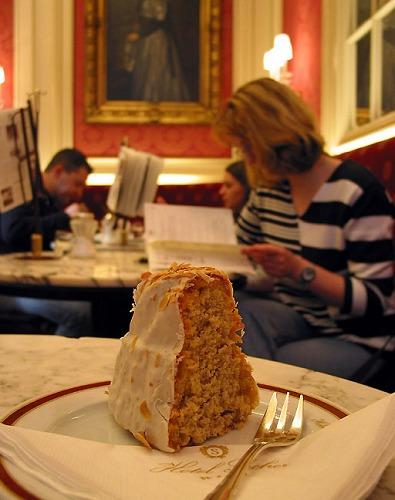 淮海中路上的巧克力蛋糕店,热巧克力浓浓稠稠的,喝完满心温暖,新鲜出炉的布朗尼有着泥土般的厚实感,还有好大一份的tiramisu,挖一大勺塞到嘴巴里,creme和酒的味道配得很到位,奢侈的感觉就此漫溢出来;这里的环境很幽静,装设的也很有情调,都是一对一对的,很适合情侣;穿过繁华的街市,寻觅向往已久的用巧克力制成的甜点饮料,果然像爱情一样妙不可言。