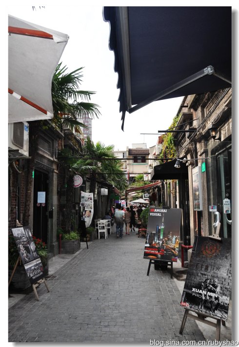 田子坊,类似北京的798,是潮人聚集地,如今也是老外的另一处后花园。买东西,不推荐去那里,价格都虚高的;找灵感,去那里是不错的选择,因为店主都是带着创意在那里开门迎客的。这次的收获是,里面有一家卖纯银饰品的店,貌似为港人所开,设计极为简洁大气精致,很合我的胃口,也许以后会去收一件心水之物吧。图片这次就没拍,贴张去年夏天的充数吧。BTW,9号线打浦桥站下来,到田子坊极为方便,另外该站新开的日月光百货是购物餐饮的新去处,中午在4楼的粤菜馆吃了一顿,菜量大,汤鲜美,排骨煲仔饭让人觉得有赞不绝口的冲动。