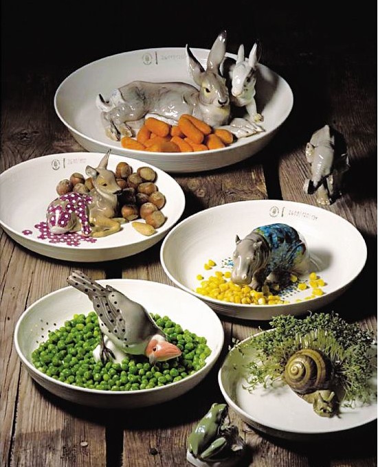 如果荷兰设计师Hella Jongerius生于二百多年前,她可能在Nymphenburg当个工匠都说不定,Hella姐的设计一向讲求灵性强调亲手触碰。连一个洗手盆都可以弄得似件摆设,不过将洗手盆放上枱收藏有点那个,不如名正言顺帮Nymphenburg设计些精品啦。Hella姐从 Nymphenburg的700多种动物造型内挑了5款,再从新分配角色堂而皇之放到正中,最后添点图案装饰,轻轻一招就从老掉牙的瓷器动物变成美得不可方物,这就是设计啦。