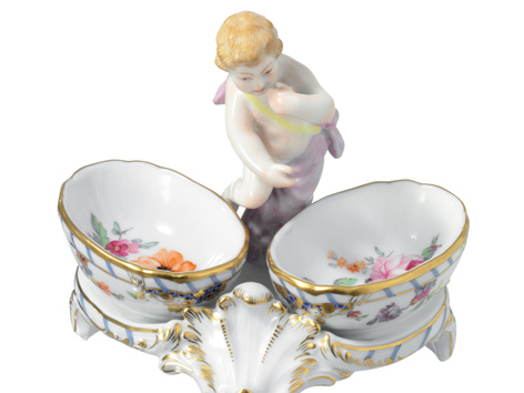 KPM瓷器的特别之处还在于其每一件作品都是孤品。因为,件件都是手工制作。现在,KPM是世界上少数仍坚持全手工制作的工厂之一:从制模,塑型到绘彩。KPM是世界上唯一所有产品可以以纯白色销售的瓷器手工工厂,同时它又可提供种类繁多的装饰图案,有些餐具的图案装饰可达19种之多,其尊贵之处还在于雕工精致的浮雕和手工精湛的花饰彩绘。