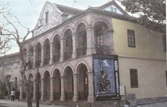 古典巴洛克风格的拱廊台柱,靠后部分现在为黄色油漆