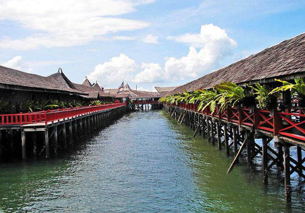 这家酒店提供的客房建在支柱上,客房屋顶为棕榈叶式。酒店的结构设计使得客人如同身在传统的Bajau水上别墅。