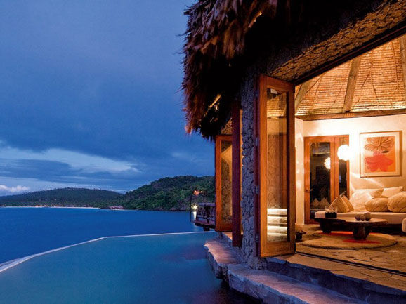 1972年,马尔科姆·福布斯将这里当做自己的私人度假村,现在,它的主人,红牛掌门人迪特里希·梅特舒不遗余力地将其打造为最秀美的热带世外桃源。高昂的价格带来的是顶级的奢华享受和绝对的私人空间。25座独一无二的别墅,都是传统的斐济民居风格,每间别墅都有各自的泳池。别墅内部有Bose 音响,巨大的等离子电视以及装有香槟的私人酒吧,还有考究的装饰——海贝式的沙发,五颜六色的椰壳制成的灯具,花岗岩雕刻成的浴缸。这里精美的开胃菜,应有尽有的美食让人流连忘返。这里有五家餐厅,一个spa,一间马厩和一个18洞的高尔夫球场。骑着自行车去游览长达7公里的岛屿,你会发觉劳萨拉岛像是一个独立王国:有有机农场,友好的工作人员队伍,一个码头,专门为私人飞机准备的飞机棚,还有一艘潜水船可以去环礁游览。