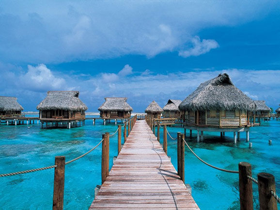 如果不是水深只到腰部,待在远离尘嚣的这里,你会觉得自己飘在海上。当独木舟为你送来早饭时,这种感觉会更加强烈。这里的礁石虽然没有Moorea其它地方的漂亮,但是这里的水上别墅却不容错过。它们是南太平洋上最早的海上建筑了,建于20时间60年代。