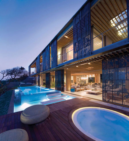 这栋豪宅所在的位置是La Lucia海滩边上最后一块允许开发住宅的空地,即便是这样,要想在这里造房子仍然不是件容易的事。因为离海滩很近,政府对环境保护有着慎重的考虑,私人住宅项目必须经过严格的审批,并且在建筑外观和材料上都有重重限制。经过长达一年的反复修改,由SAOTA建筑事务所提出的设计方案终于通过了当地政府的批准。这家南非本土的建筑设计团队再次证明了自己在环保度假住宅方面的强项。
