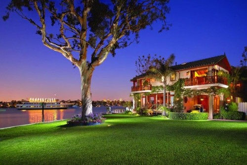 这座亚洲风情的别墅面积约为500平方米,位于加州新港海滩(Newport Beach),这是一个面积约2.4公顷的私人岛屿,岛上没有汽车,只有23座住宅。离岛不远处有一个车库,从那里你可以通过一座近25米长的步行桥走过来,或是搭乘高尔夫球车到住宅门口。宽敞的草坪和海滩宽敞闲适,别墅庭院内还种了许多棕榈树。