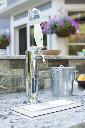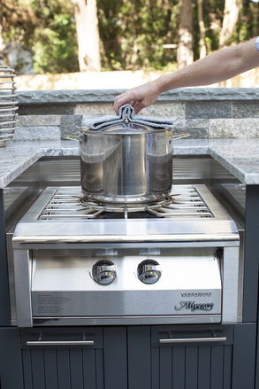 这个厨房是由Brown Jordan Outdoor Kitchens安装的。这家公司总部位于康涅狄格州沃灵福德(Wallingford),生产定制橱柜,并分销室外厨房产品。雷斯勒家的厨房里还有一个啤酒龙头。
