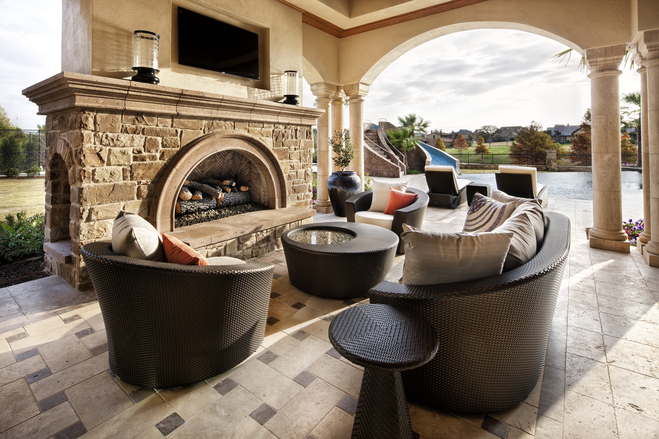 室内设计师们表示,有越来越多的客户要求他们关注室外空间。驻圣地亚哥(San Diego)的设计师凯瑟琳·茨巴克尼克(Kathleen Zbacnik)对一套约460平方米的顶层公寓进行了整修,在51平方米的阳台上建了一个室外房间。房间墙壁用石头砌成,地面铺的是赭色石灰华,该空间内有一个烧木头的比萨烤炉,几把长沙发椅,一张餐桌和一台安装在石头基座上的环绕立体声电视机。