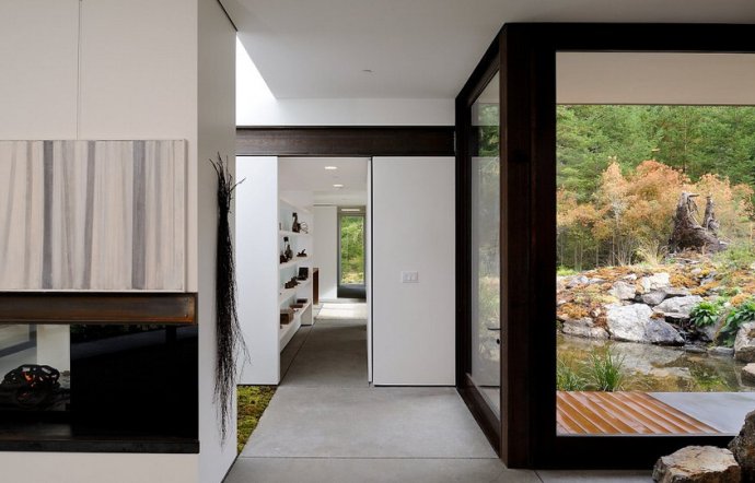 这栋非比寻常的冠军住宅是建筑师加里·戈莱德威斯为自己的母亲而建的。应母亲的要求,这座住宅要借用自然风光做大背景,另外一间起居室甚至被安放在树林当中。它占地2600平方英尺(约合241平方米),有一个厨房、用餐的联合区、主人套房,研究和艺术工作室。一座花园横穿其中,将整个房屋分为两半,使得房间的每个角落都能有最佳的观景视角。与此同时,住宅还兼顾了节能环保理念。比如,施工材料一部分来自已经有华盛顿东部一座有着100年历史的仓库,施工现场发现的苔藓和岩石也被用为房屋的建造和装潢。美国建筑师协会评委会的一名成员表示:“这是一栋禅意的房子,用料俭省却效果非凡,同时还满足了客户的要求。”