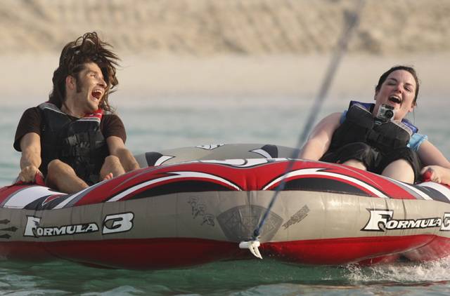 希尔顿可以为游客提供各种各样的海滩娱乐活动,其中包括空中探险与海上探险。电视编辑Jaye Lentin与录音师Alice Johnson就亲身体验了令人难忘的动力牵引橡皮艇运动。