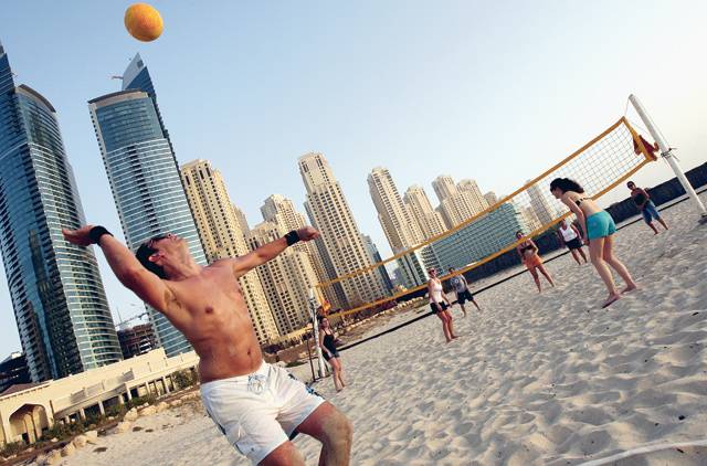 排球、足球、风筝是朱美拉沙滩上倍受欢迎的体育运动,而有一些人则钟情于日光浴,或者在阳伞下举行家庭野餐。