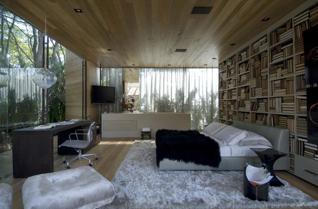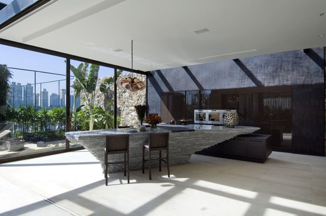 公开式建筑,是我最最喜欢的一种建筑表现形式,从空间的角度,它能很好的利用周围的环境,不仅能吸收充足的阳光,还能让整个房屋看上去够空旷,充满了自由的气息。建筑师Fernanda Marques为这个设计取名为Loft 24-7,位于巴西圣保罗,建地面积为250平方米。整栋LOFT可以说是半露天状态,室内室外从视觉上没有太强烈的区分,但功能上已然不同,无论是书房、休息室、会客厅,都是敞开的,而整个LOFT竟是全钢化玻璃天花板,即便外面下着磅礴大雨,待在休息室放眼大宅,那会是什么样的感受呀,真让人魂飞梦牵啊。现代风格的家具陈列和建筑选材,开放绿色的室内环艺,这不就是对未来居住环境的一个畅想么?