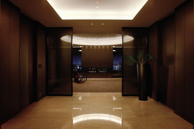 这四套待售公寓位于森大厦株式会社(Mori Building)的平河畔森大厦(Hirakawacho Mori Tower)顶层。平河畔森大厦住宅楼是2010年日本开盘的最贵公寓楼。图为其中最大的一套公寓的门厅,门厅直通49平方米的客厅,客厅旁边便是大阳台。