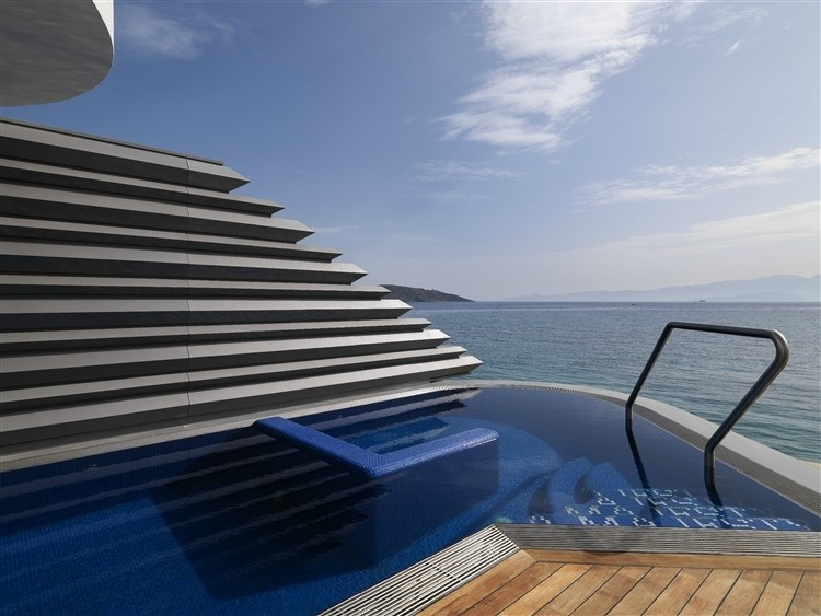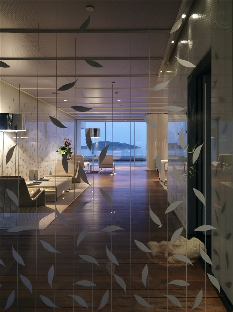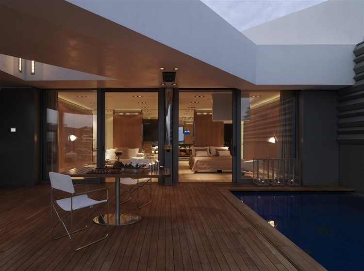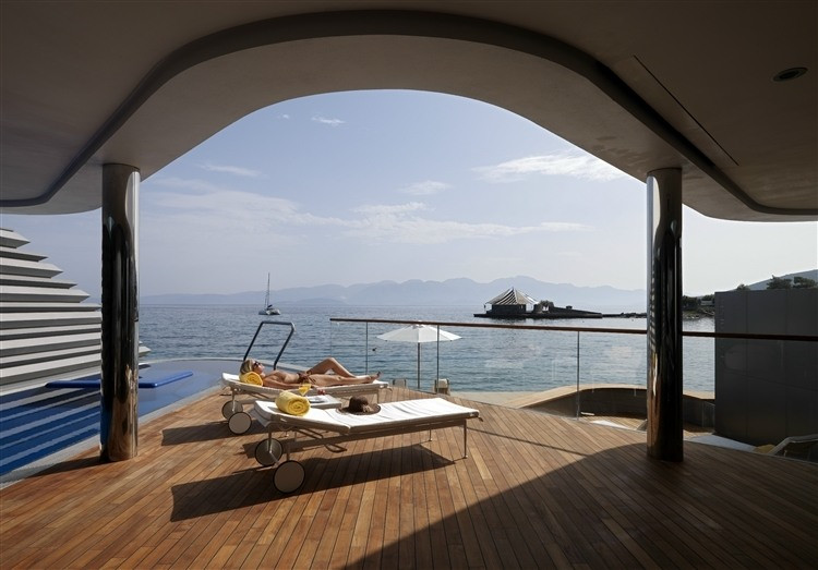 有三个甲板上水平,在别墅之一,较低的私人和一个在海平面,给客人选择的隐私。使用柚木地板,抛光钢柱和玻璃栏杆记得为主题的游艇。