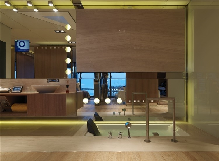 有几种不同类型的大理石(例如深绿色,淡蜂蜜,黑巧克力)和木饰面(红木,柚木,橡木白化和樱桃)的选择,以每间别墅都拥有自己的身份。在浴室的镜子从背后照亮。镜像已打磨精细,让光通过。在这样做时,线的镜像壁的任何突出的照明系统保持清洁。也有一台平面电视,镜子后面没有打开时,它是无形的!浴缸设置在池中的水平,因此,当该空间是开放的,总是有一个以外的水的关系。
