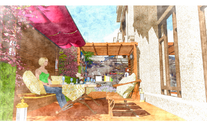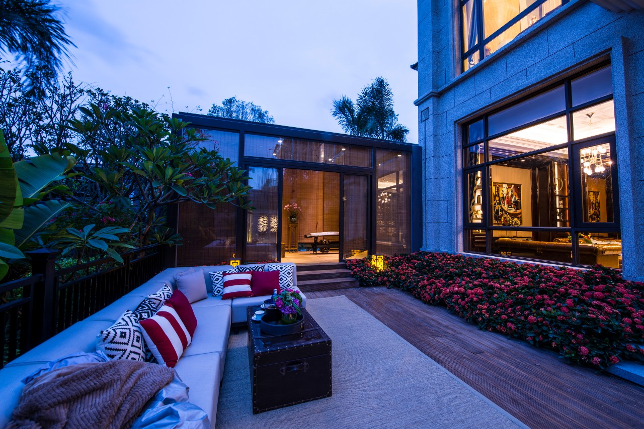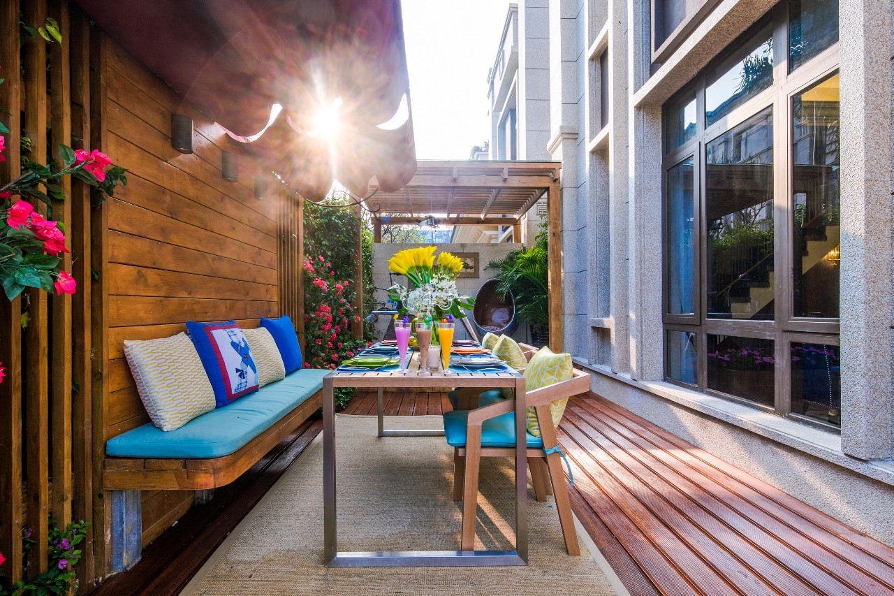 这里的户外软装表达与室内相互统一,营造一个小型朋友聚餐的场景和氛围。朋友相约、家人相聚,烧烤聚餐,欢笑畅谈。