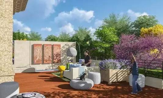 北庭院延伸室内老人房,设置老人休闲空间,漫进绿篱的开花乔木与爬满植物的木格栅,让休闲空间更加私密、围合。作为卧室功能的延伸,这里增加老人休息、品茗、下棋等户外功能,丰富了庭院内容。