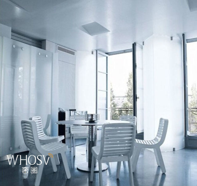 卡尔大帝这样评价自己在巴黎的这间寓所:“这不是房子,是一只飞船,它正飞往一个不存在于地球的城市。”好吧,老爷子你说什么就是什么吧,不过这间由大量铝材、玻璃和不锈钢构造的屋子,确实不像是地球人住的。