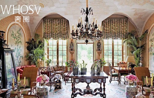 Valentino在伦敦罗马纽约拥有多处豪宅,在2008年退休后,他每年都会在巴黎近郊的城堡住几个月。始建于17世纪,原房主是路易十三的财政大臣,Valentino在1995年买下这座小皇宫,卧室就有8间,由于老爷子有很强的中国情结,所以房子的设计充满了古香古色的远东风味,清帝王画像,朱漆家具随处可见,还有老爷子从60年代开始收集的古董瓷器几乎都放这了,所以坊间流传别人睡不着数羊,他睡不着数瓷器,没办法,老爷子就是这么有实力。