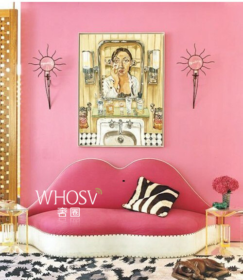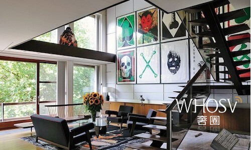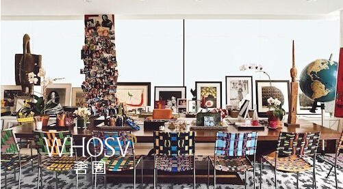Diane von Furstenberg位于纽约曼哈顿的楼顶宅邸,就是个巨大的玻璃樽,有名得快成旅游景点了。她的家里充斥着各种醒目的色彩和印花,除了不少自家品牌的家居用品,还有诸如Andy Warhol给她画的肖像这样的珍品,阳台上有个大草坪,种着各种逼格极高的植物。对了,楼下就是她的时装店,这一点我很喜欢,上班近。