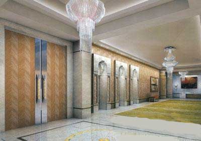 “安蒂拉”的每一层设计都堪称奢华到了极致。以第8层为例,这里的酒店式大堂中装有9部电梯,而通往宴会厅的楼梯扶手全部覆盖白银,宴会厅天花板80%的面积都挂满水晶灯,显得金碧辉煌。